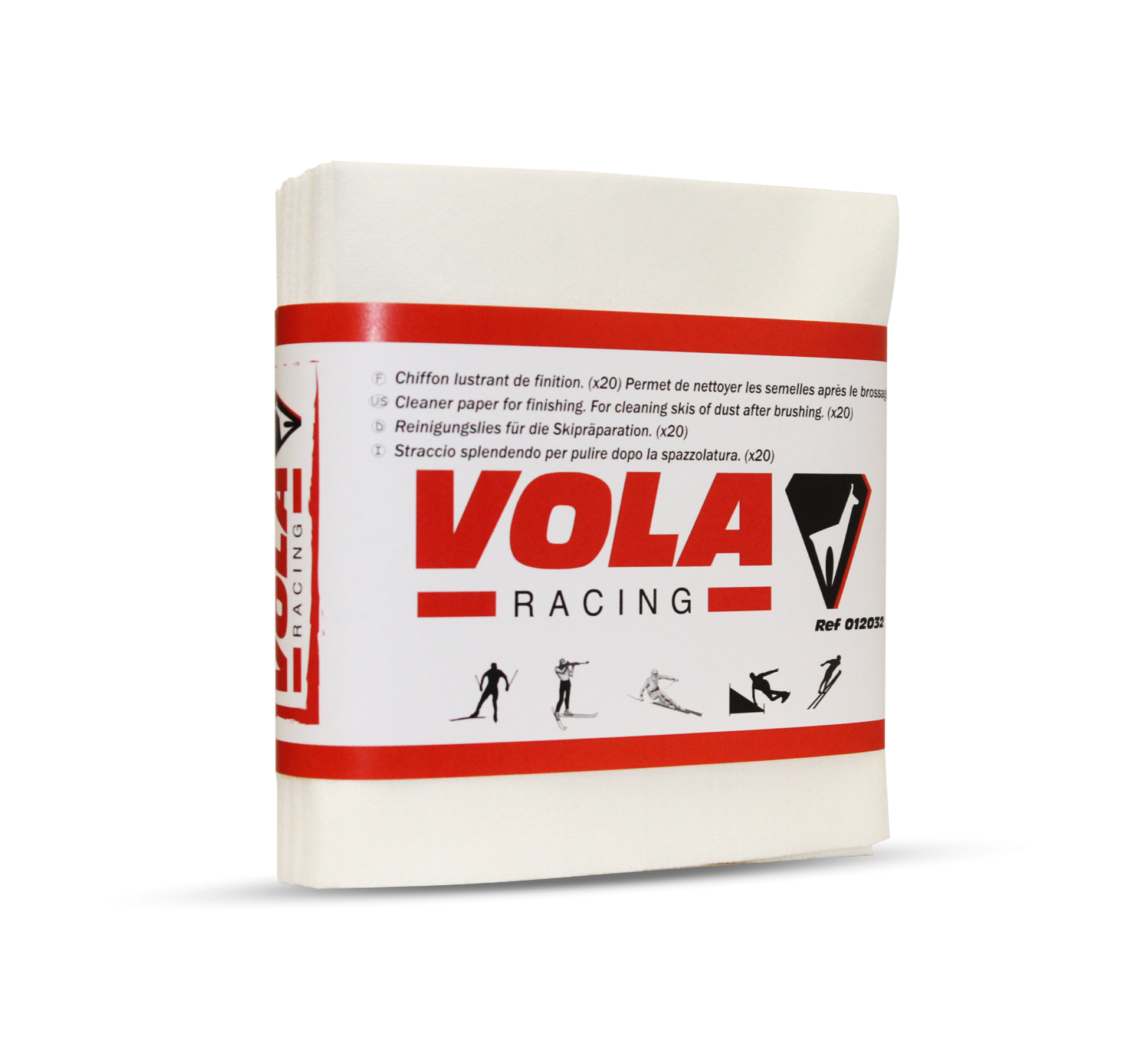 Papper för rengöring av skidor efter slipning och borstning. Innehåller 20 pappersark.